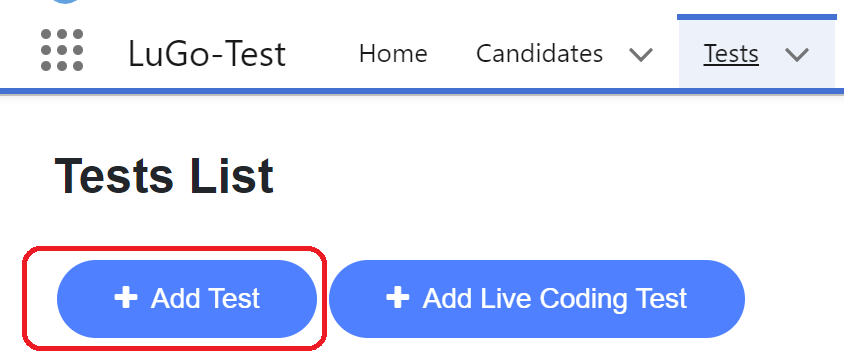 Begin by clicking on the "Add Test" button on the Tests tab. This action navigates you to the test creation page.