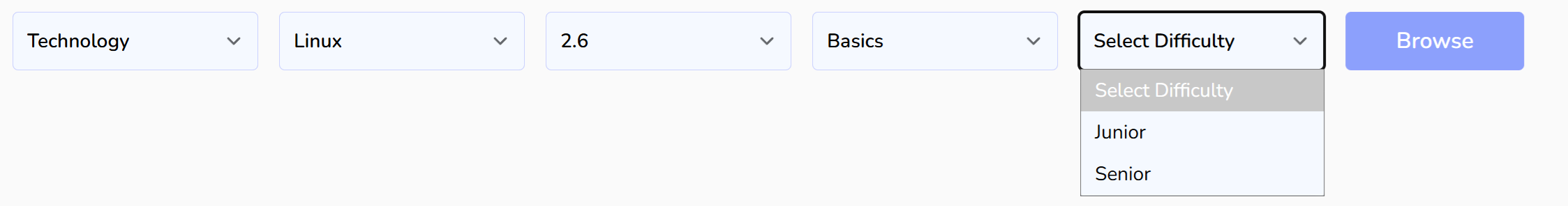 Selecting the relevant difficulty will open the questions browser, allowing you to choose the appropriate questions.
