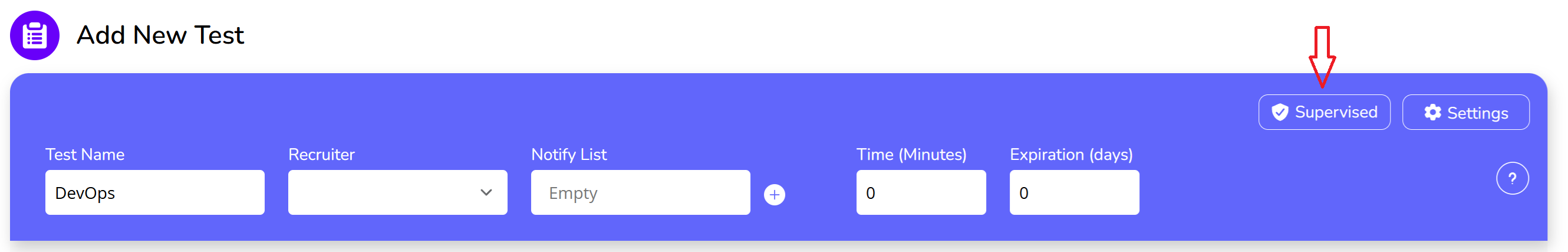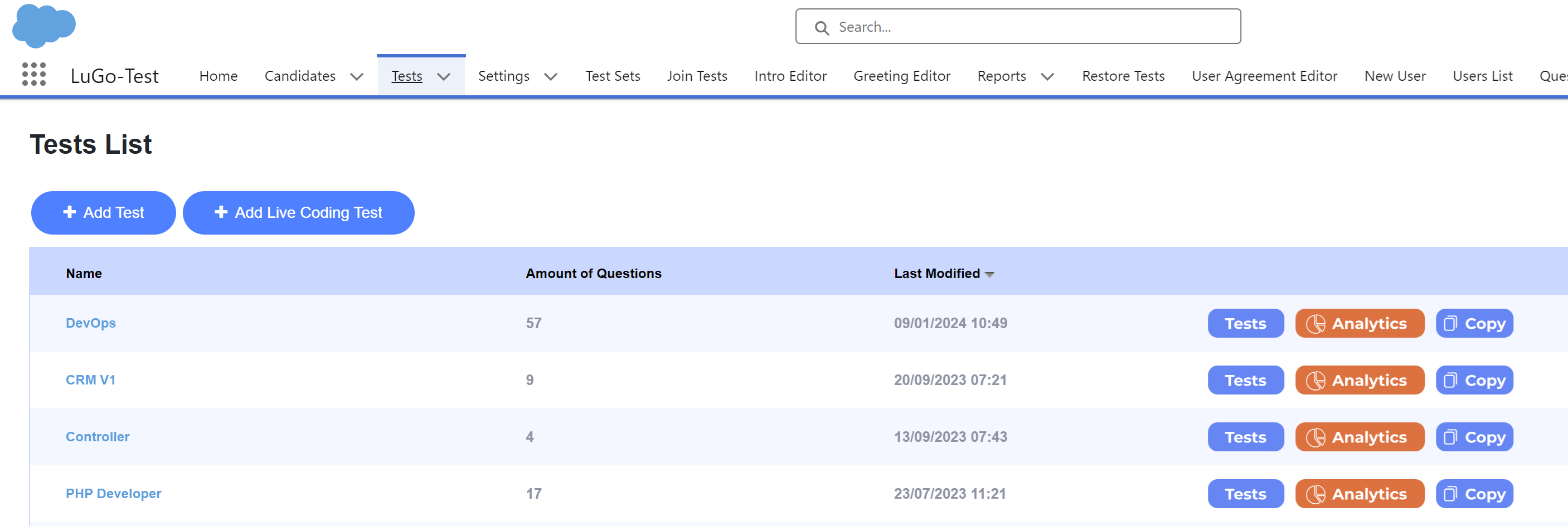 To apply proctoring, start by selecting the test from the tests tab: