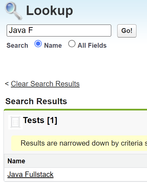 To add a test, use the "Add Test" section. Click the search icon to bring up the search field. Enter the name of the desired test and click "Go!". Select the test from the search results.