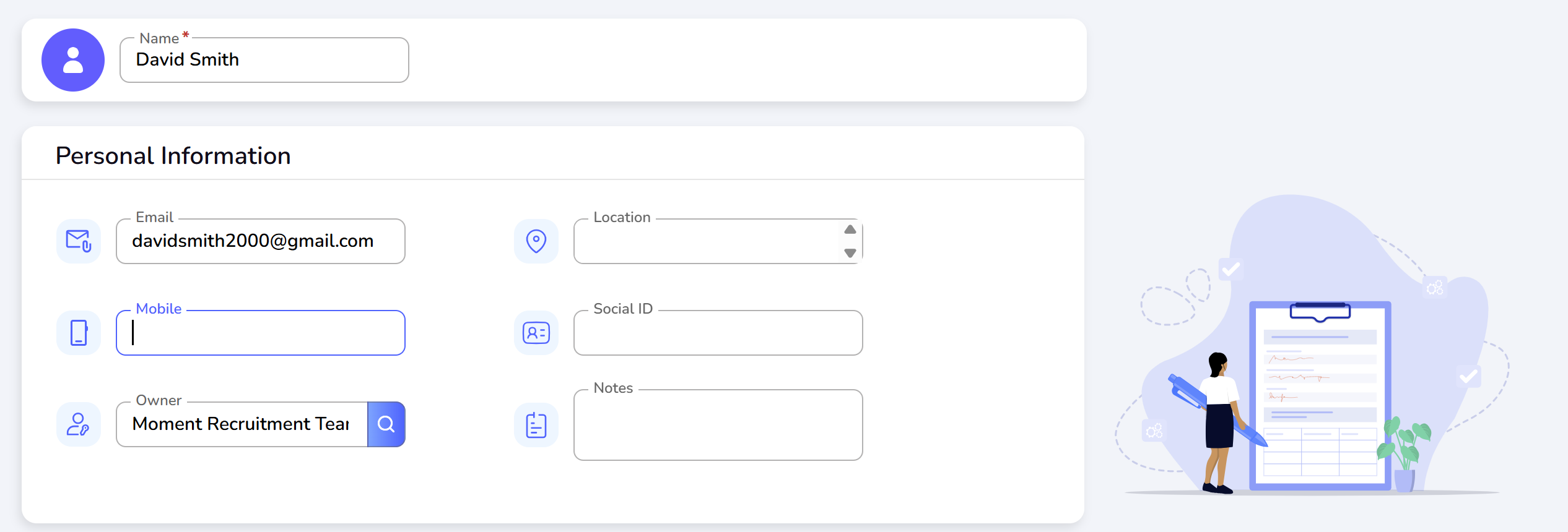 Click "Save" to store the new candidate profile.