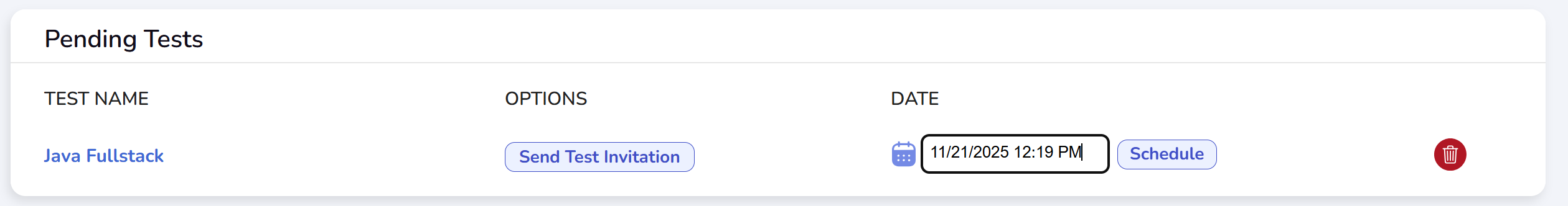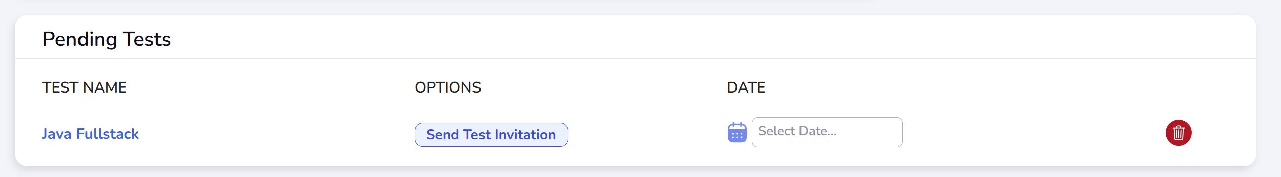 Once you have created a test, you can proceed to send invitation emails to candidates.