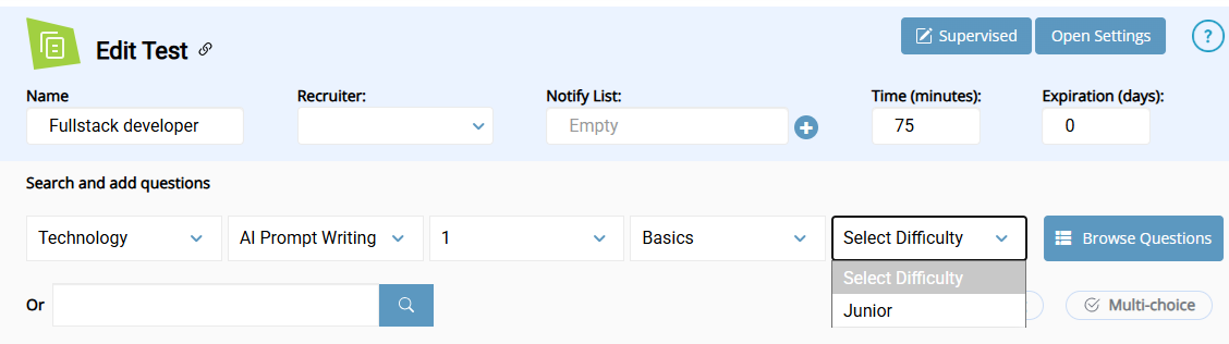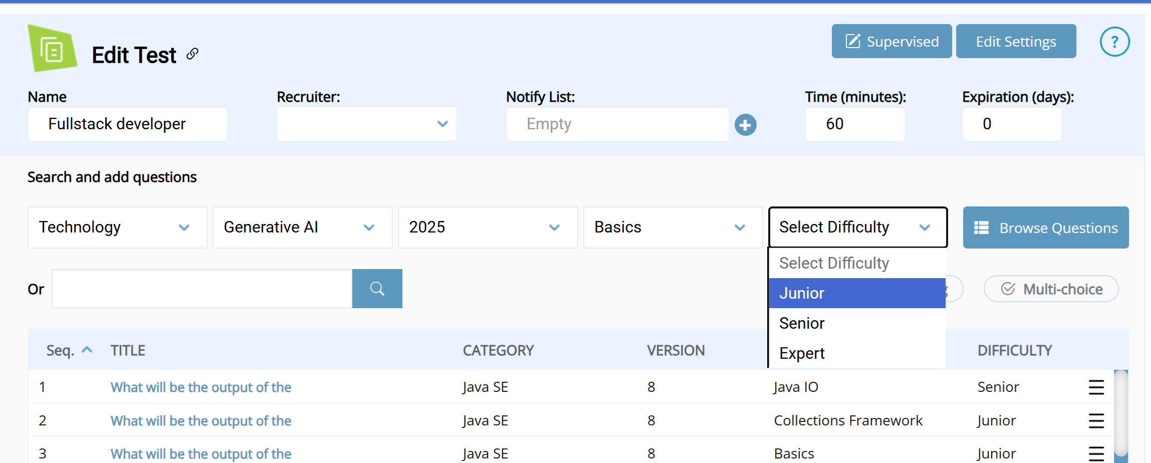 You can now enrich your assessments by including Generative AI questions designed for various levels of expertise and job roles.