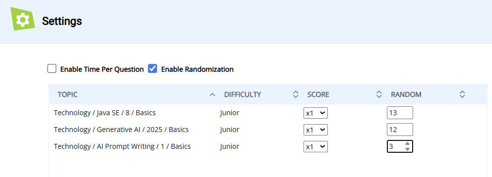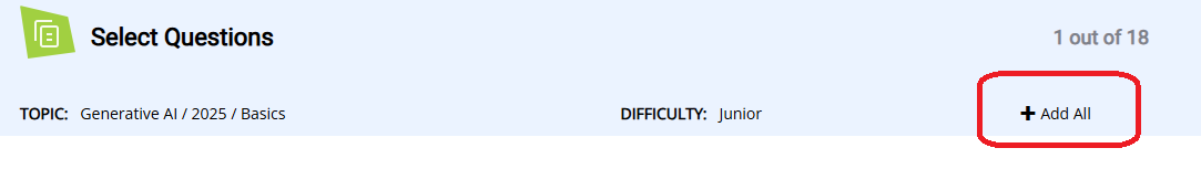 Note: For GenAI Non-Technical and GenAI Fundamentals, we also recommend adding all the questions under: Technology -> AI Prompt Writing - Junior level
