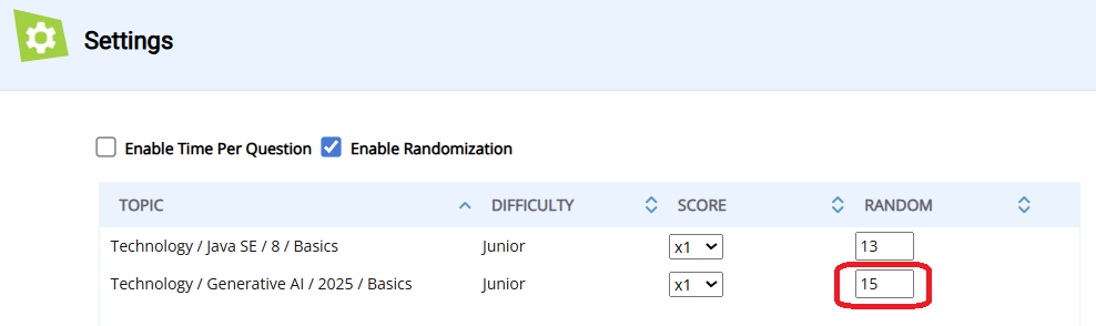 To clarify, this will ensure that we randomly pick a certain number of questions from the GenAI questions.
