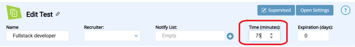 3. Increase the Test Duration by adding 15 minutes to the existing time to accommodate the GenAI questions.