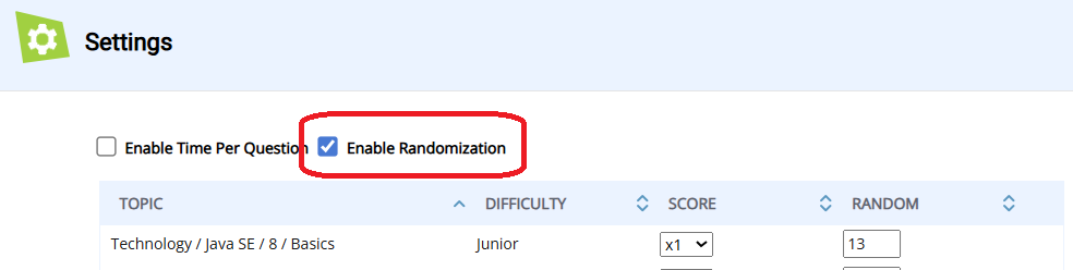 In the Technology / AI Prompt Writing row, make sure the Random field is set as follows: