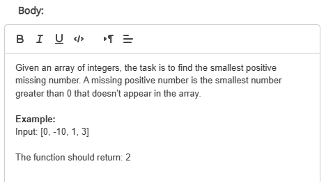 In this example, we'll create a Java coding question where the task is to find the smallest positive missing number.